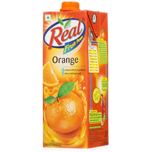Refresh yourself after a long day with a glass of Real Fruit Power Orange Juice. It's prepared from the choicest oranges, thus offering you a premium quality product. While it can be had as it is, it can be used in the preparation of cocktails as well. The hygienic packaging ensures the product remains fresh for long.